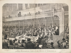 A fantastic and wonderfully detailed view of House of Commons.  Beginning just before the middle of the nineteenth century, in England and then America, illustrated weekly newspapers made their appearance. These folio sized papers covered current events of local, national and international import, printed fiction and poetry by prominent authors, recounted gossip of note, described popular tourist sites, and generally were filled with stories on any subject that might be of interest to the reading public of the second half of the nineteenth century.