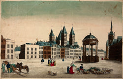 Perspective views, or vues d’ optiques, are a special type of popular print published in Europe during the eighteenth century. These prints were a form of entertainment meant to be seen through devices called "optical machines," "optiques," "zograscopes" or "peepshows." The prints were exhibited by traveling showmen in the streets throughout Europe and also were collected by those in the professional and upper classes who had the optical machines at home. There was a great curiosity about the appearance of unvisited European cities and exotic locations in the further reaches of the globe, and these prints were one of the only ways the general public could get a look at the wider world. When displayed in the optique, the prints were able to transport the viewer into a faraway place, an unknown city, or perhaps into the midst of a dramatic bit of contemporary history or to the distant past. While some of these prints are based on first-hand drawings, others are strictly imaginary or at least untruthful. The artists who etched them usually copied other prints or paintings and were quite unabashed in their willingness to take a beautiful, unnamed harbor from a painting by Claude Lorraine and call it, for example, Rotterdam.
