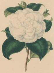 This beautiful image was produced for a comprehensive series of 624 plates on varieties of camellias, begun in 1848 by Alexandre Verschaffelt, and continued by Ambroise Verschaffelt after March 1850 through to its completion in 1860. Artists who created the images for the Verschaffelts were B. Leon, A. Lagarde, G. Severeyns, L. Stroobant and P. Stroobant. These handsome, hand colored lithographs follow in the tradition of Jung's illustrations for Lorenzo Berlèse’s Iconographie du Genre Camellia . . . published in Paris from 1839-43. Sitwell: Great Flower Books, p. 161.