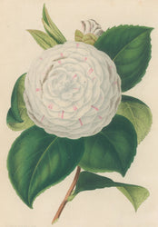 This beautiful image was produced for a comprehensive series of 624 plates on varieties of camellias, begun in 1848 by Alexandre Verschaffelt, and continued by Ambroise Verschaffelt after March 1850 through to its completion in 1860. Artists who created the images for the Verschaffelts were B. Leon, A. Lagarde, G. Severeyns, L. Stroobant and P. Stroobant. These handsome, hand colored lithographs follow in the tradition of Jung's illustrations for Lorenzo Berlèse’s Iconographie du Genre Camellia . . . published in Paris from 1839-43. Sitwell: Great Flower Books, p. 161.
