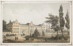 A print from a rare series by the Viennese architect Carl Wilhelm von Doderer. In 1852 Doderer was appointed a professor at the Genie Academy which was a training center for engineering troops in Klosterbruck, now Znojmo, Czech Republic. Doderer was involved in numerous construction projects for the Austro-Hungarian Army and in conjunction with the War Ministry his drawings were issued in a series of prints of various Austro-Hungarian military educational institutions.