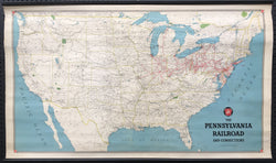A bright railroad map showing the Pennsylvania Railroad System and its connections from Kansas City to Maine and as far south as Kentucky. Dated by internal evidence of rail lines.