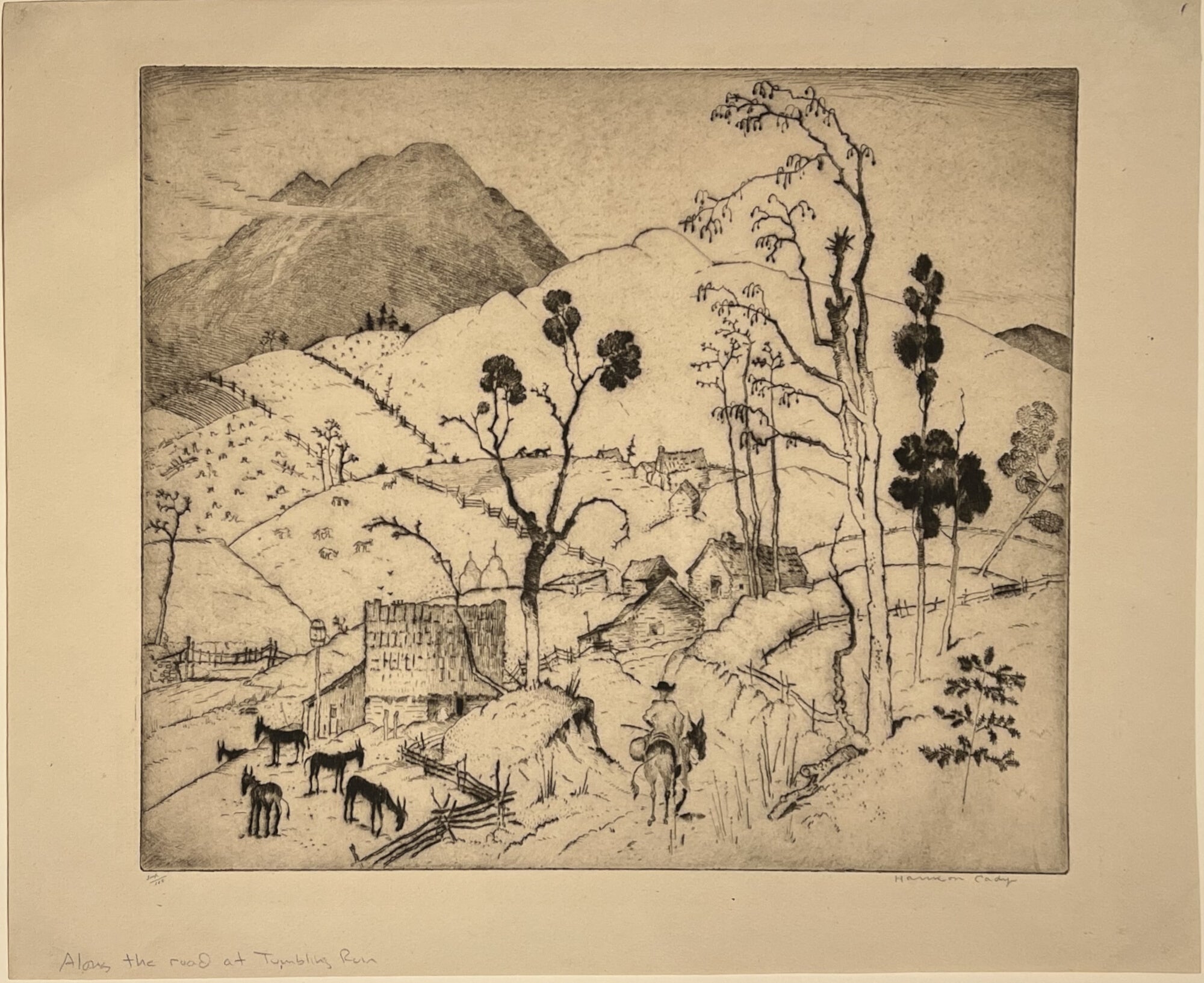 Travelling to Rockport, Maine, and the Carolina Mountains, Cady became interested in depicting the life that he saw passing away through the influence of such modern devices as the automobile. In paintings, drawings and in drypoint etchings Cady in the late ‘20s and early ‘30s blended raw experience with considerable conceptual sorting to create a visual record of this vanishing life.