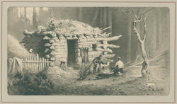 Rudolf Cronau. "Blockhaus im Urwalde. Oregon." [Cabin in the Forest] From Von Wunderland zu Wunderland. Landschafts und Lebensbilder aus den Staaten und Territorien der Union.