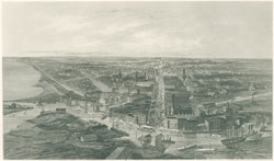 A print from a scarce group of excellent American views from The Ladies' Repository. This mid-nineteenth century periodical was produced in Cincinnati by members of the Methodist Church. It was a magazine "Devoted To Literature and Religion," containing articles, poetry, fiction, and notes of interest to its readers. One of its most interesting aspects was the inclusion of engravings. Many had a religious or "genre" theme, but many were topographical views of different parts of the United States. This magazine had a limited circulation and so these prints are quite a bit scarcer than most similar engravings of the period. These prints were after large lithographic birds-eye views of the period issued by the Smith Brothers. These are among the most interesting and hard-to-find American views of the middle of last century.