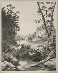 A rare print from a very interesting series of American views that combine the work of some of the most talented Americans of the early nineteenth century. Joshua Shaw (ca. 1777-1860) was born and trained in England, where he exhibited at the Royal Academy. With a recommendation of his work from Benjamin West, Shaw emigrated to Philadelphia in 1817. He was enthralled by his new country, and as a result conceived the grand scheme of producing a folio of prints based on “correct delineations of some of the most prominent beauties of notable scenery.” He planned to travel throughout the United States to make his drawings, and to issue the prints by subscription in six sets of six views each. This was the first systematic attempt to depict the American landscape, and it is a foundation work in the history of American color-plates. Only eighteen of the intended thirty-six prints were produced, for either Shaw ran out of energy, or the public did not sufficiently support the venture.