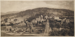 Ca. 1910. 13 x 26 ½ (image). Photogravure in sepia on parchment paper. Copyright W.T. Littig & Co. New York. Two inset views. Very good condition.