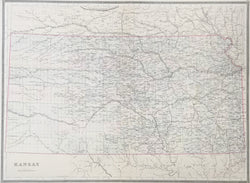 A precisely detailed map from the Philadelphia publishing firm of William M. Bradley & Bro. This Kansas map is a fine example of nineteenth century American mapmaking. It shows the state in impressive detail, with emphasis on rivers, towns, and the myriad railroad lines criss-crossing the state. Counties are delineated with attractive, light pastel colors. Interestingly, although this map was published in 1884 and does show counties in the northwest created in 1873, it does not show several southwestern counties created in the same year.