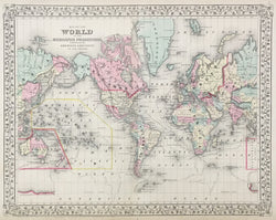 S.A. Mitchell Jr. "Map of the World on the Mercator Projection, Exhibiting the American Continent at its Centre." From Mitchell's New General Atlas.