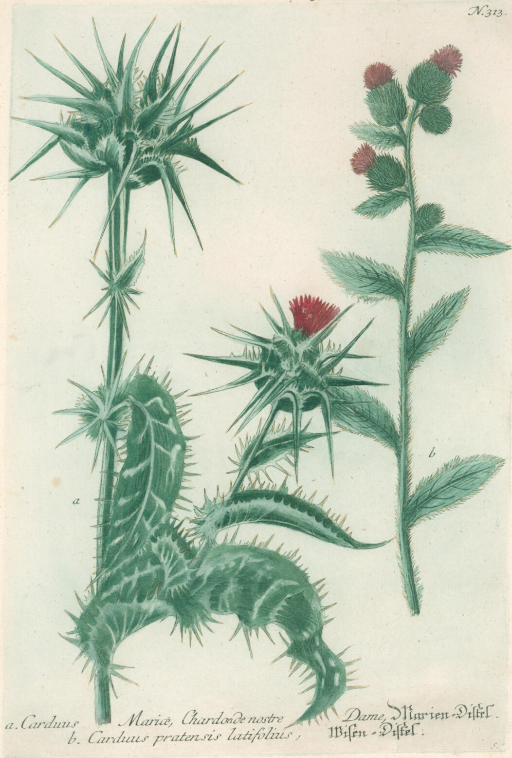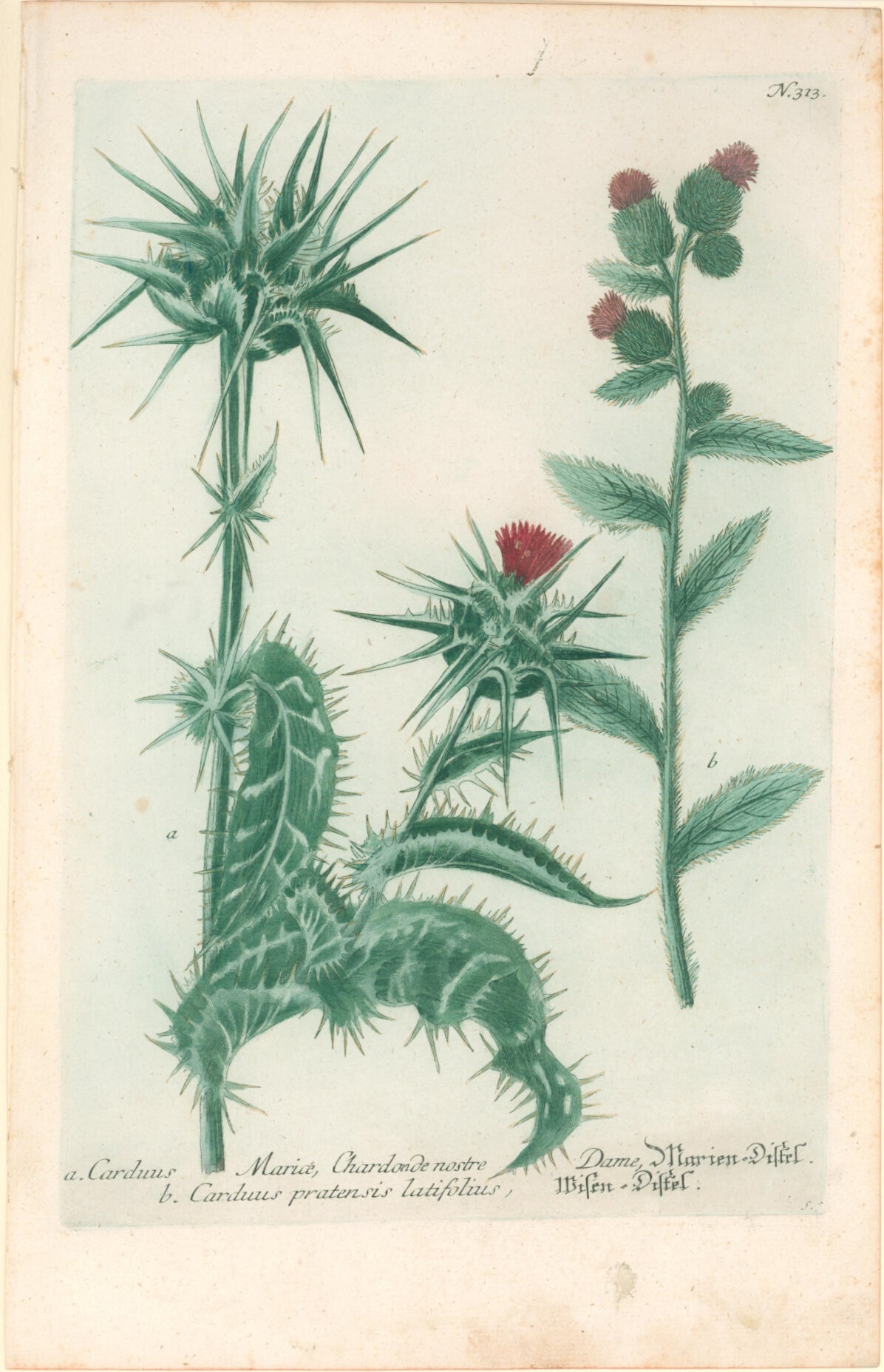 Pl. 313 [Thistle] From Johann Wilhelm Weinmann’s Phytanthoza Iconographia Sive Conspectus.